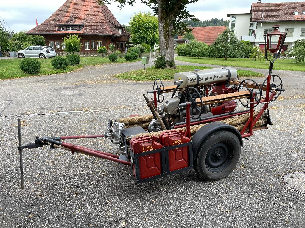 Feuerwehr Schwarzhäusern – Spritzen Klicke auf ein Bild um mehr über die Spritze zu erfahren Motorspritze Typ 2 Vogt (1942 – ??) Schaumkanone FEGA (1943 – ??) Motorspritze Typ 3